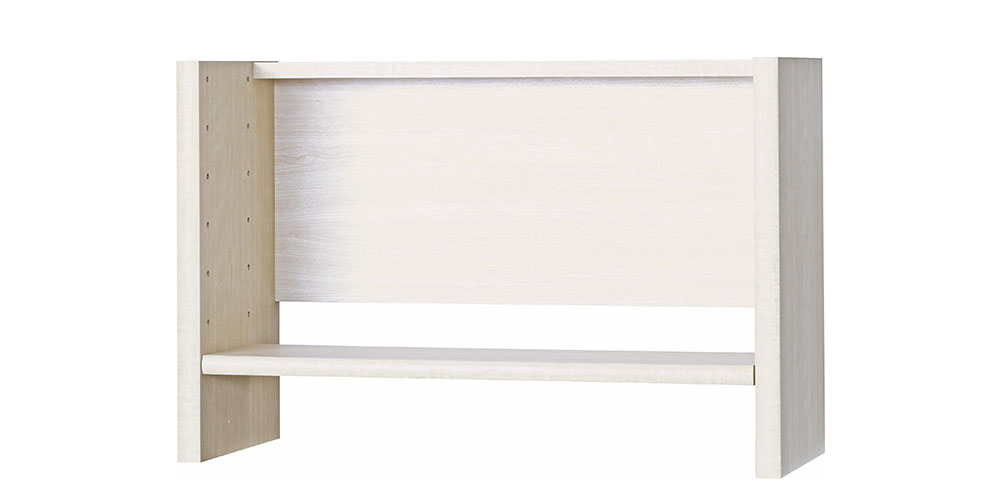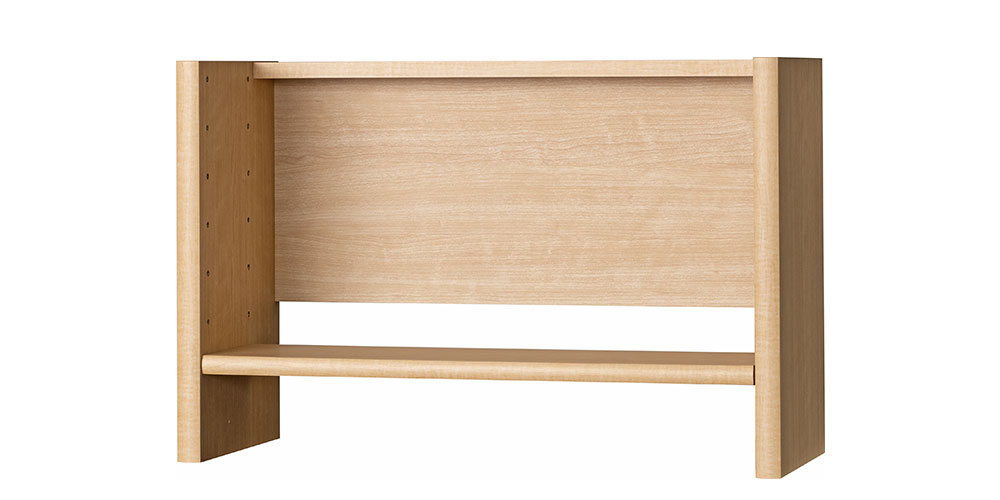 上棚は正面と両側面を囲いこむデザイン。お部屋の隅に設置してブースデスクとしての使い方もできます。