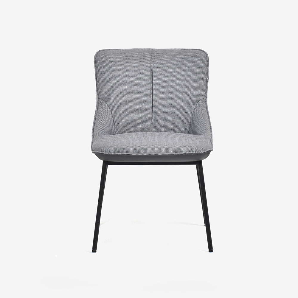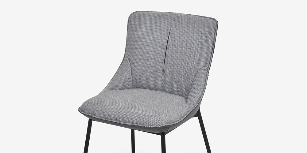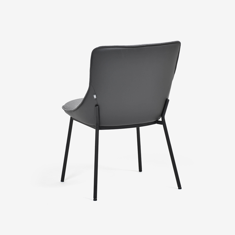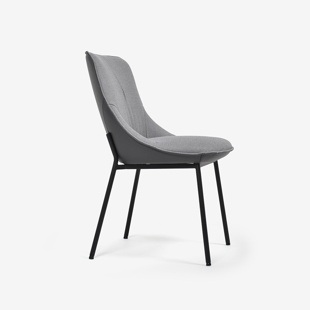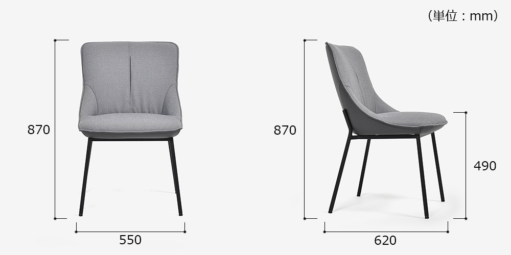 布、革、スチールの3種類の素材を見事に融合したスタイリッシュなダイニングチェアです。