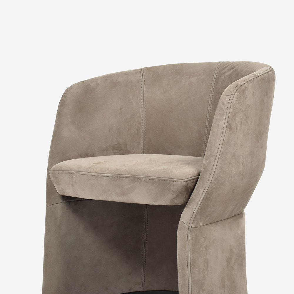 張地にはヌバックレザーを使用しており、なめらかな肌触りです。丸みのあるフォルムとマッチし、上品なお部屋を演出します。