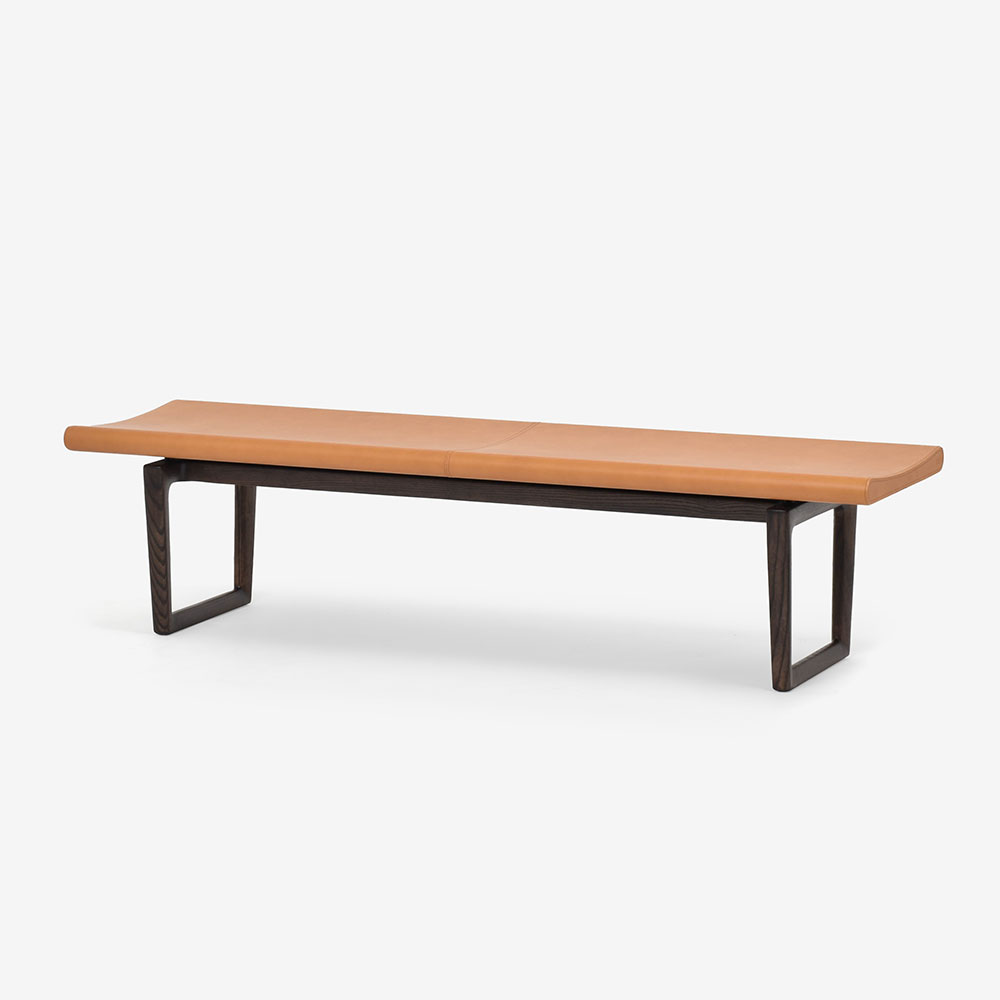 天板には上質なアニリン染めのサドルレザーを使用しています。表面にコーティングを施していないため、革の表情の自然な移り変わりをお楽しみいただけます。周縁にあしらわれたステッチがアクセントとなり高級感を与えています。