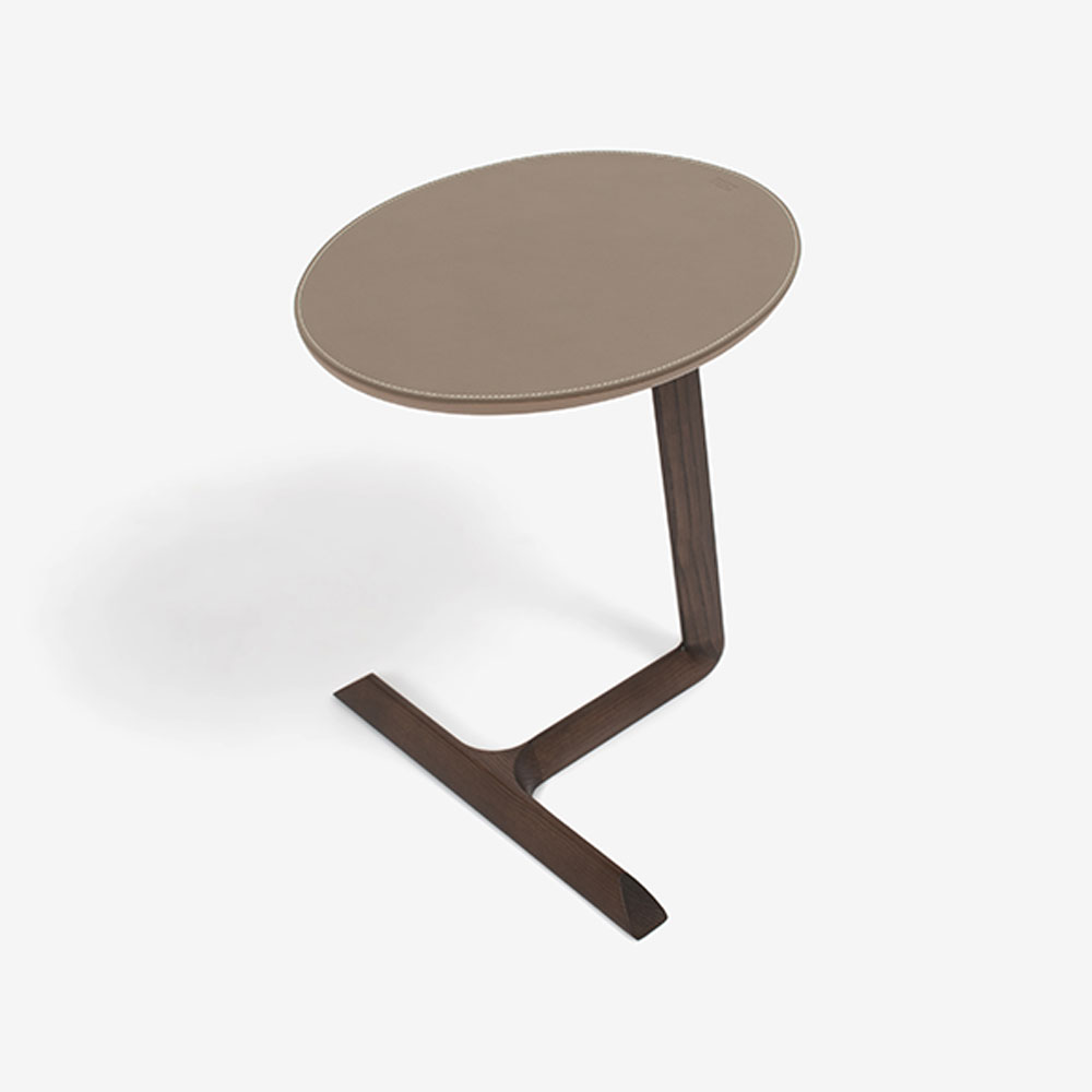 PoltronaFrau(ポルトローナ・フラウ)サイドテーブル楕円形「Fidelio フィデリオ」 アッシュ材モカ色 革トープ色