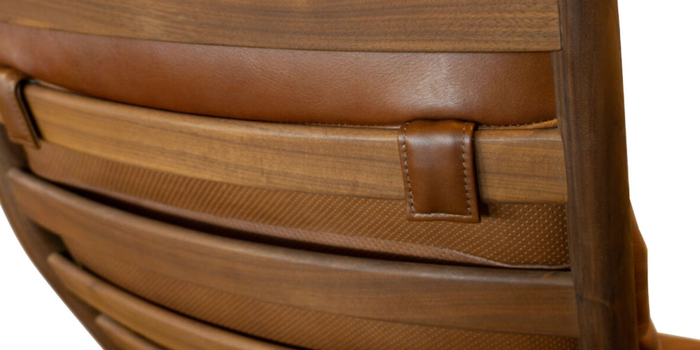 背クッションは背もたれの桟に固定金具で固定されています。長く使用することで背クッションがずれる心配もありません。