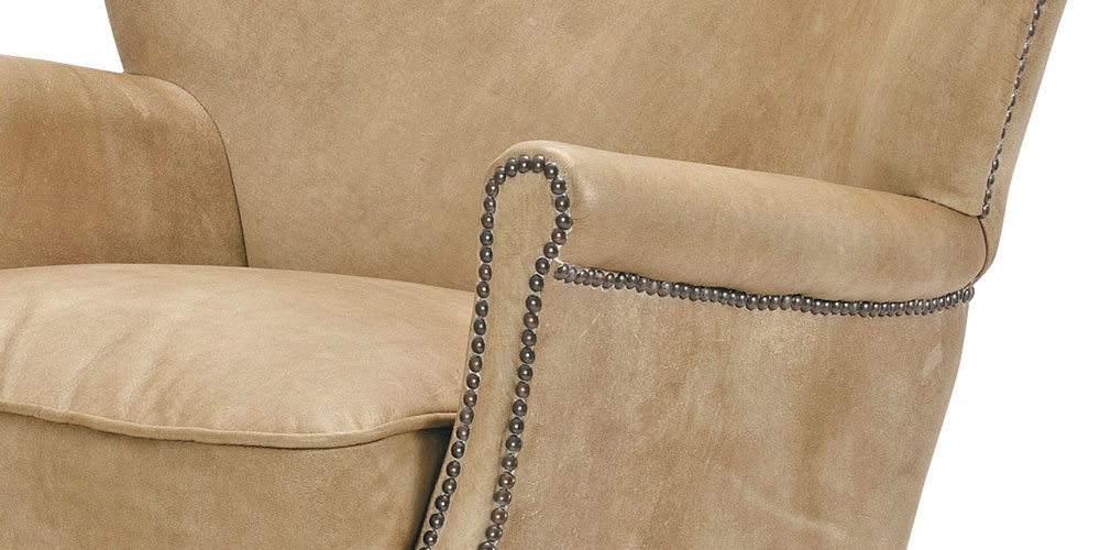 ステッチには鋲打ちが施され、アンティーク感をより感じられます。洗練されたディテールに、こだわりが詰まったアームチェアです。