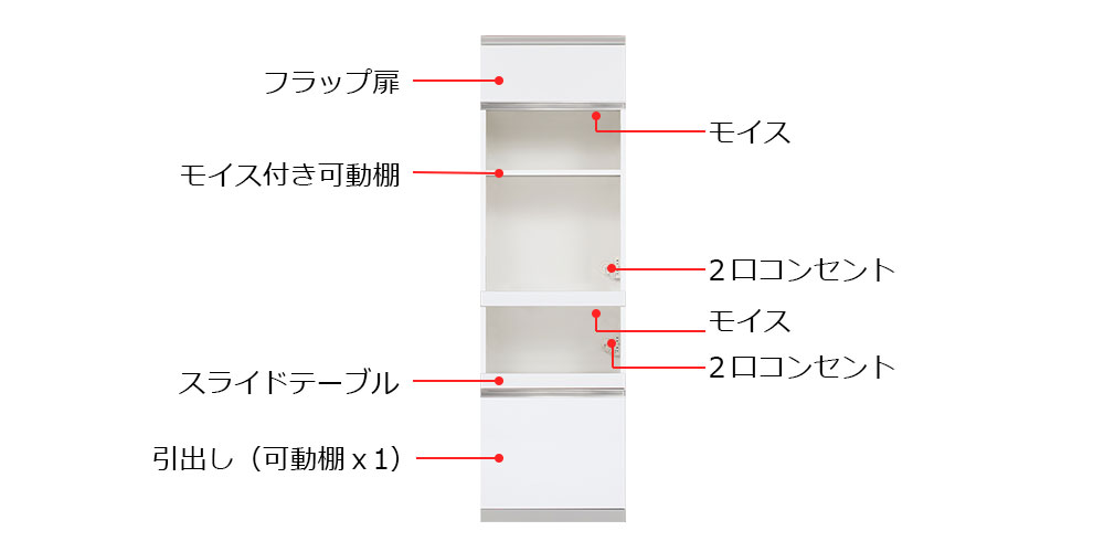 AYANO(綾野製作所)家電収納キャビネット「エヴァンティ」オープンタイプ 下段引出しタイプ 幅60.1cm 奥行47.8cm 高さ202cm 全2色