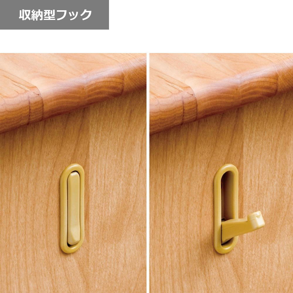 使わないときは畳んでフラットになる収納型フック。耐荷重は約10kgで手提げかばんやランドセル等もかけられます。