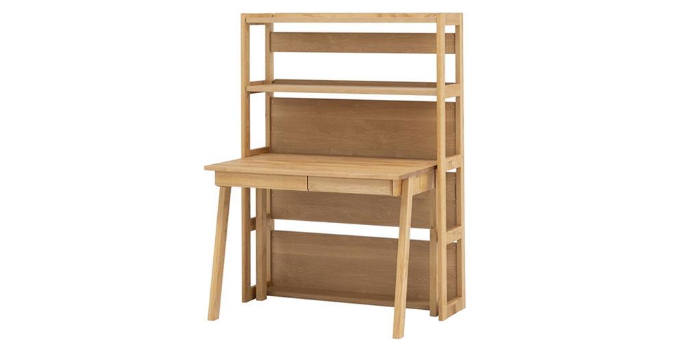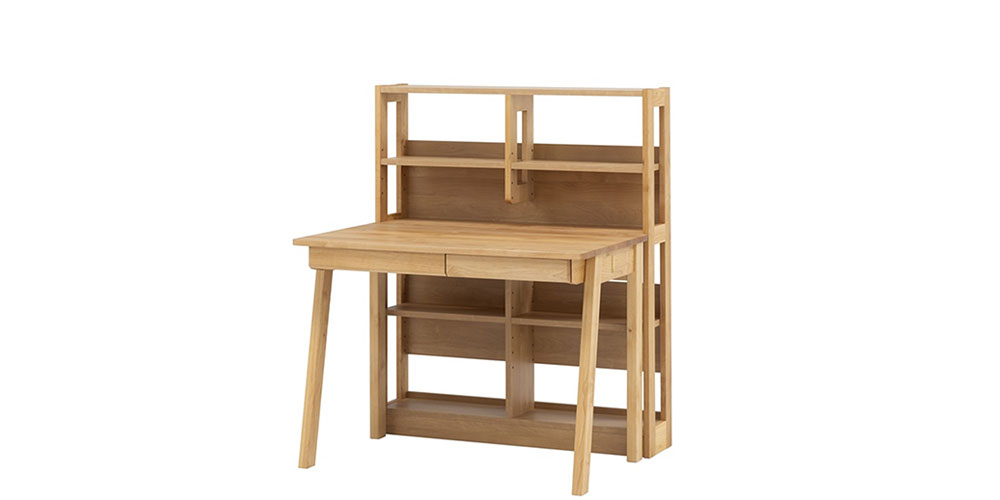 出入りのしやすいななめ脚が印象的なシリーズ。スタイルに合わせて必要なアイテムを無駄なく組み合わせられます。※画像はイメージです。デスク本体以外の家具や小物は付属しません。