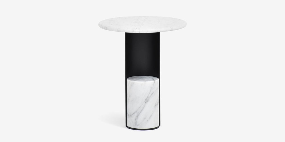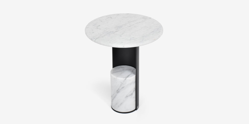 無駄をそぎ落としたシンプルなデザインのサイドテーブル「972-101」。天然石から削り出した柔らかな曲線のフォルムと、美しい石目模様が、モダンかつエレガントな印象を与えます。※天然素材のため、1点ごとに石目が異なります。