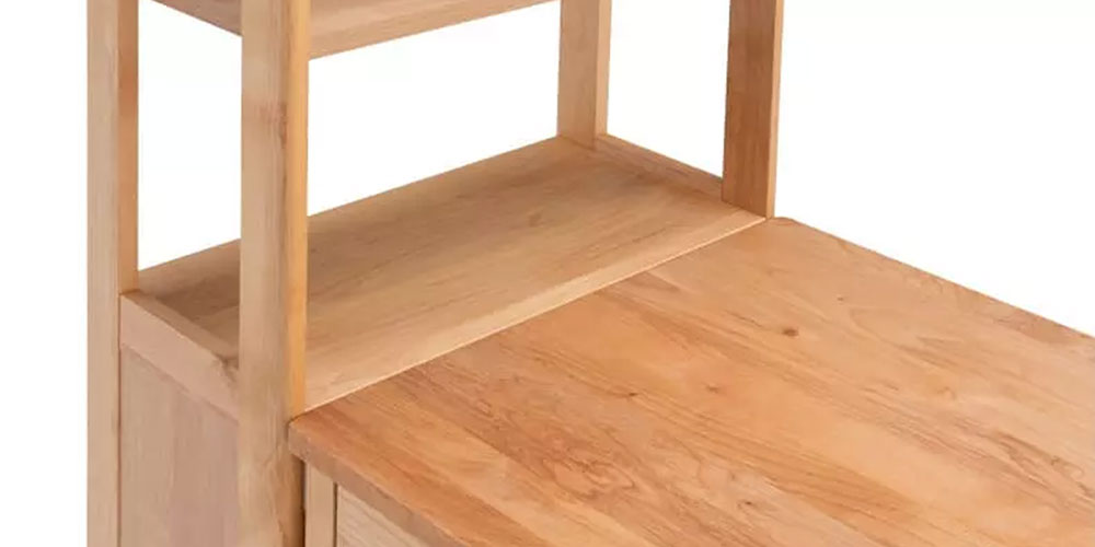 デスクと並べた時にそろう固定棚はデスク本体と同じアルダー無垢材です。