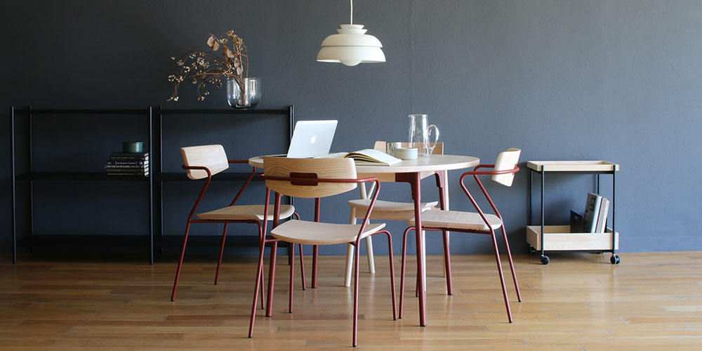 空間と人々の生活の間に寄り添う家具。dual/デュアルは構造となるスチールフレームと機能を受け止める木部のコンビネーションシリーズです。
