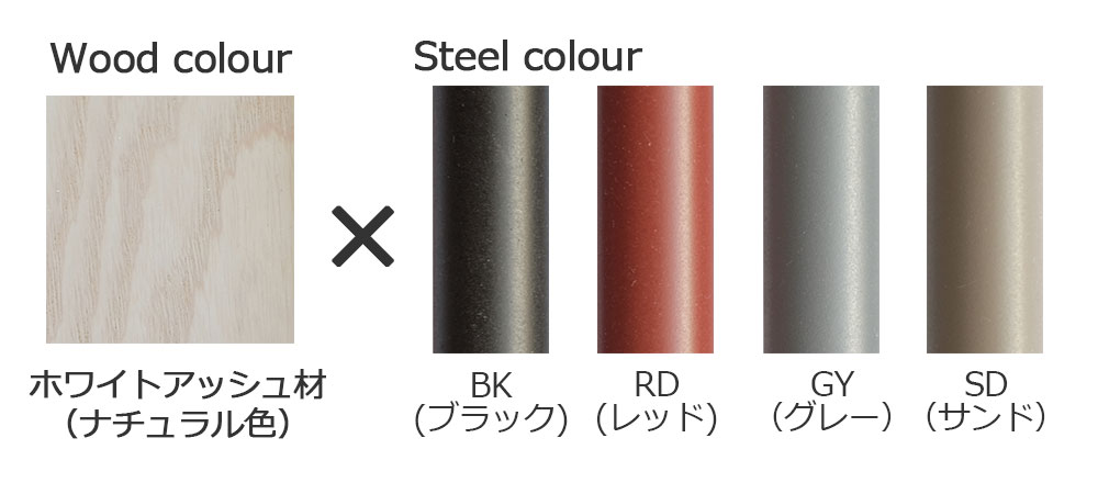 スチール部分は落ち着いたカラーの4色(ブラック・レッド・グレー・サンド)からお選びいただけます。