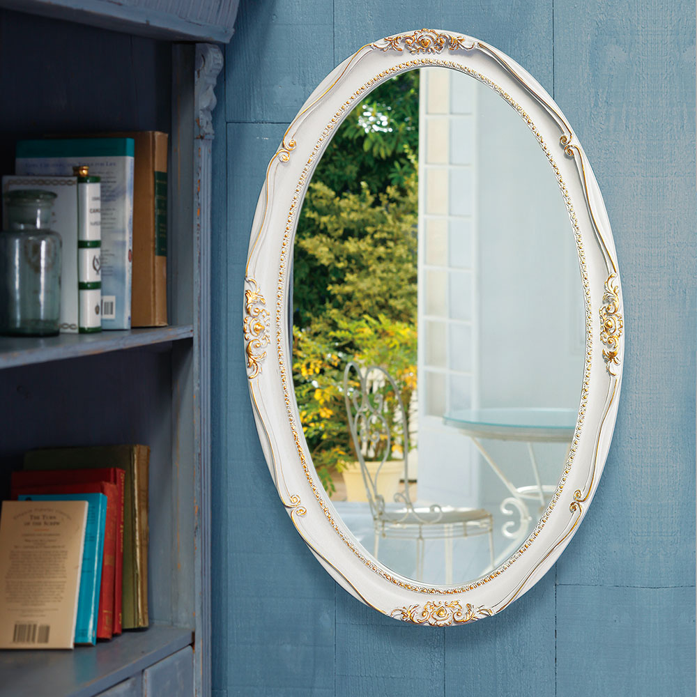 ウレタン成型(ホワイト+ゴールド塗装・アンティーク仕上げ)、ミラー