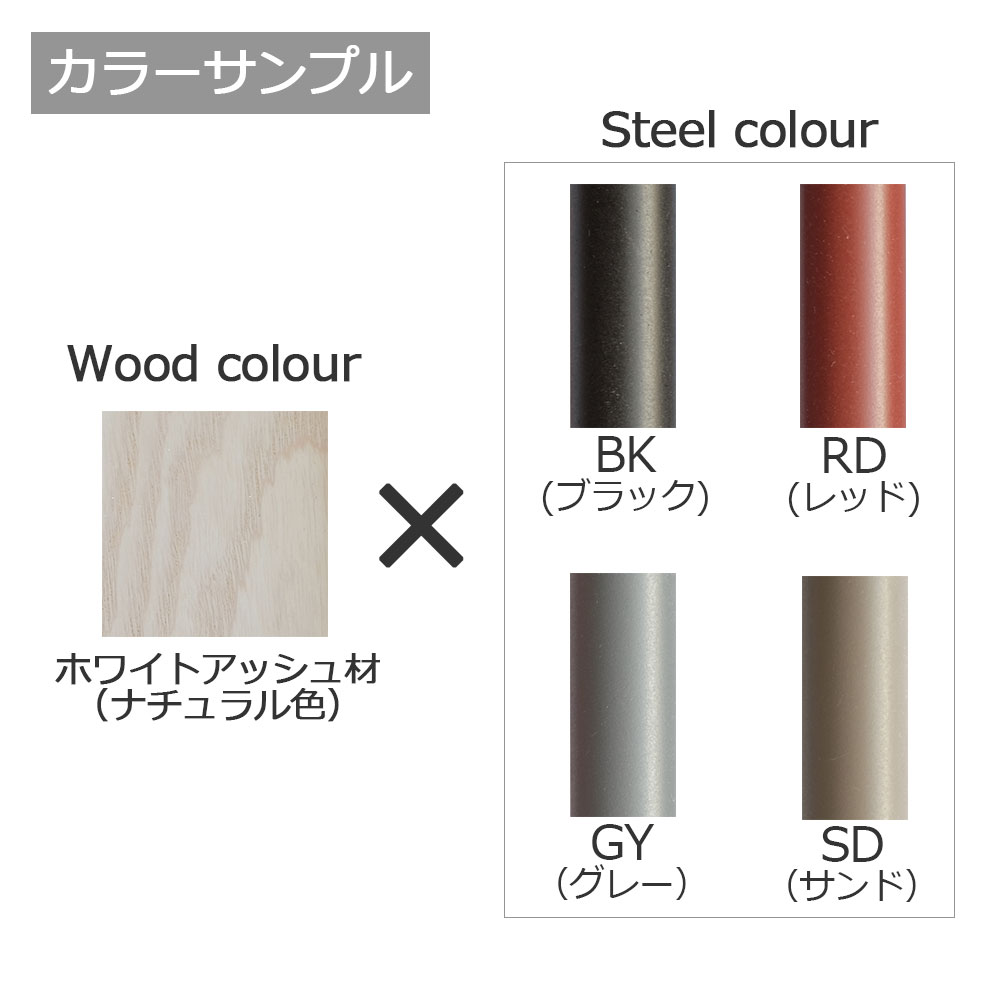 スチール部分は落ち着いたカラーの4色(ブラック・レッド・グレー・サンド)からお選びいただけます。