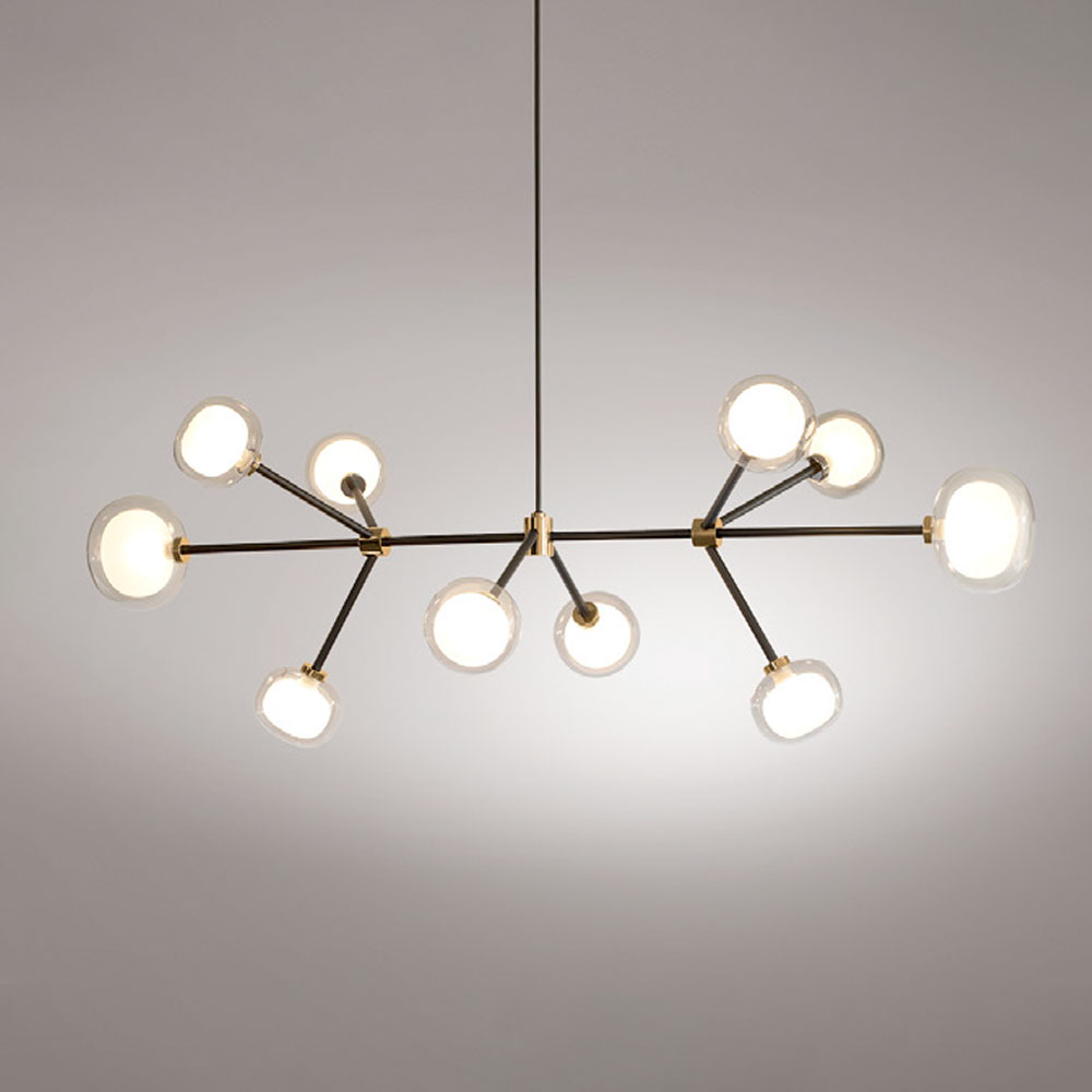 「Nabila(ナビラ)」シリーズはアルマーニ・カーサのデザイナーとして知られるCorrado Dotti(コラード・ドッティ)が、1950年代に流行したガラス製シェードとブラスゴールドメタルの照明にインスピレーションを受けデザインしたエレガントなライティングシリーズです。