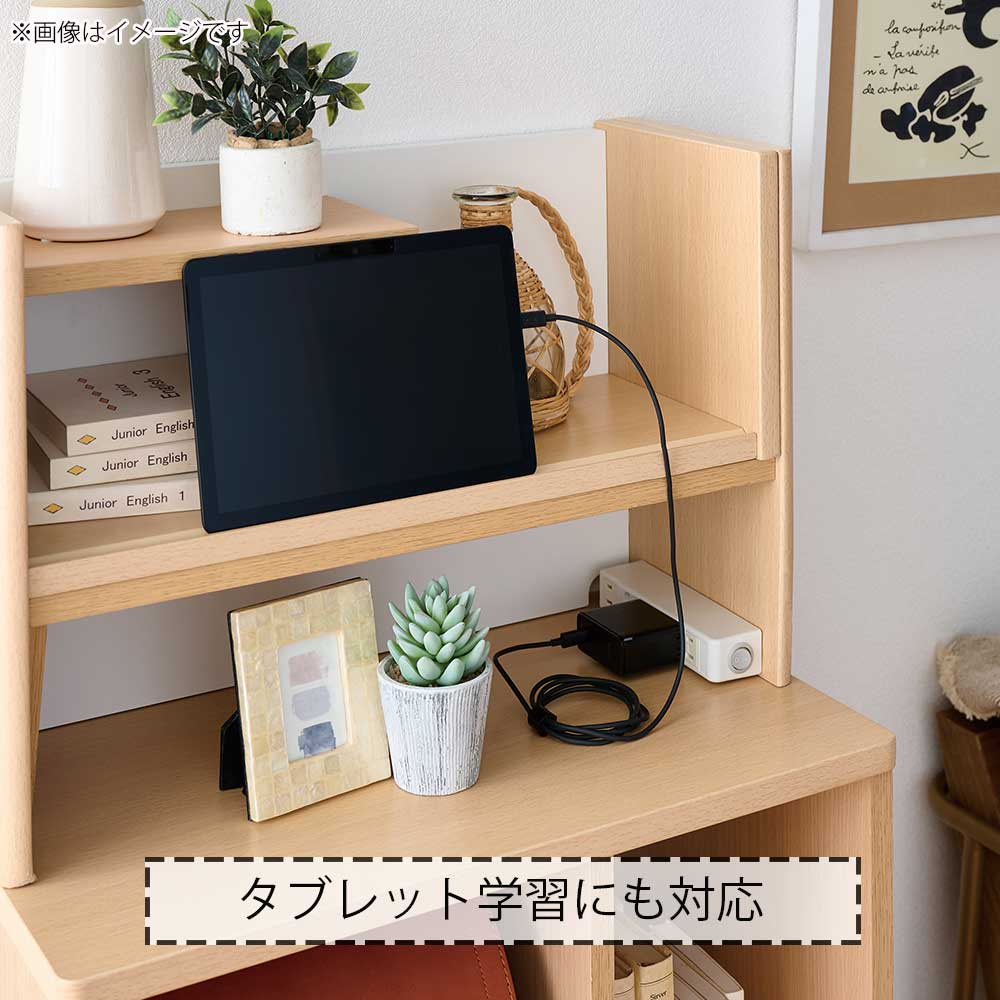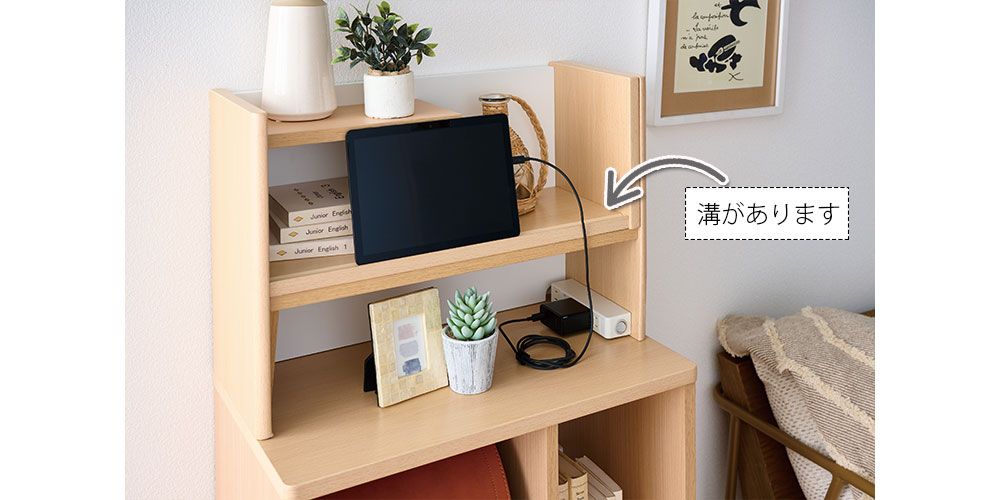 マルチラック上台は、タブレットを立てかけることができます。コンセントも取り付けることができるため充電しながらでもご使用いただけます。