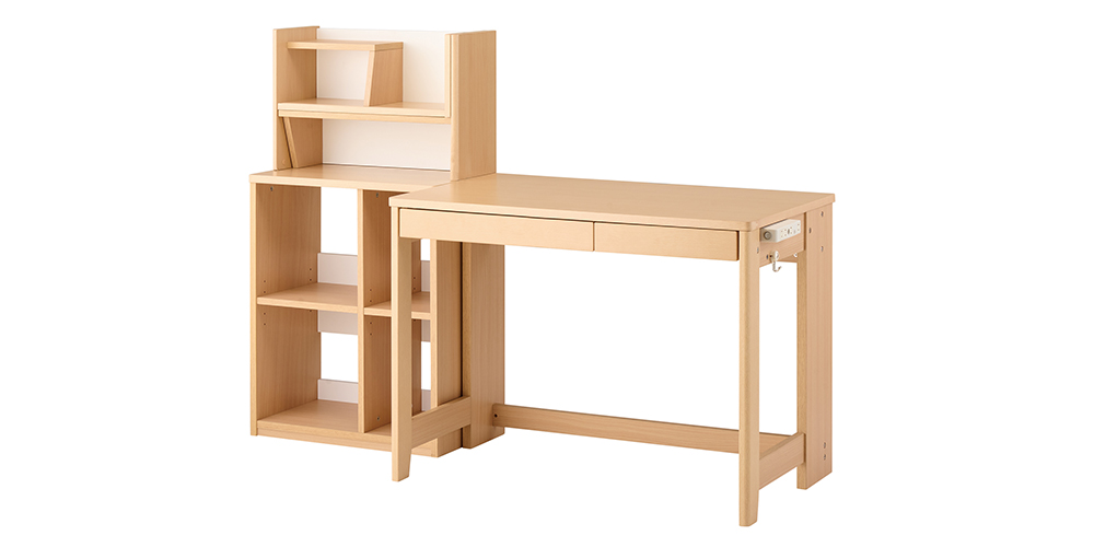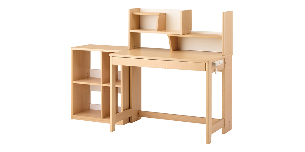 KOIZUMI(コイズミ)の学習デスク「ミニマル」は、デスク+マルチラックの構成になっており、生活スタイルや用途に合わせて組み替えが可能です。リビング学習や子ども部屋での勉強はもちろん、お子さまから大人までご使用いただける飽きのこないシンプルなデザインのデスクです。