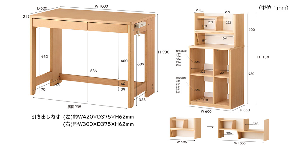 | デスク | 幅1000×奥行600×高さ730 |