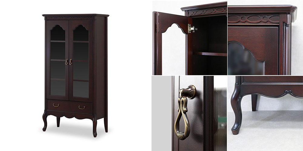 カップボード「フルール85 DM」幅85.4cm マホガニー材ダークブラウン色