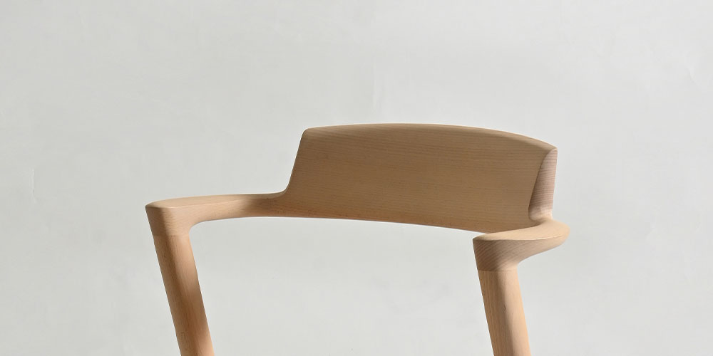 カーブした背板は、横方向は曲木技術、縦方向は切削技術で削り込んで作られています。