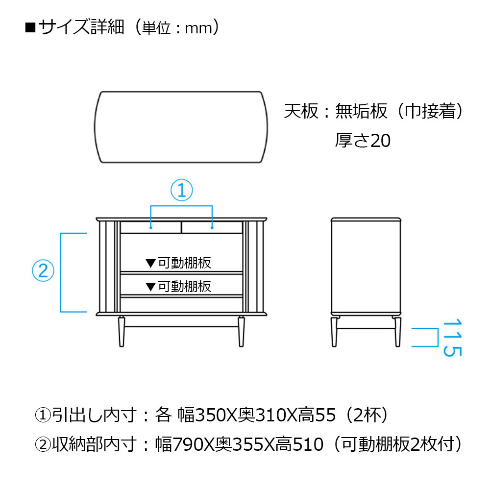 | 収納部内寸 | 幅790x奥行355x高さ510 |