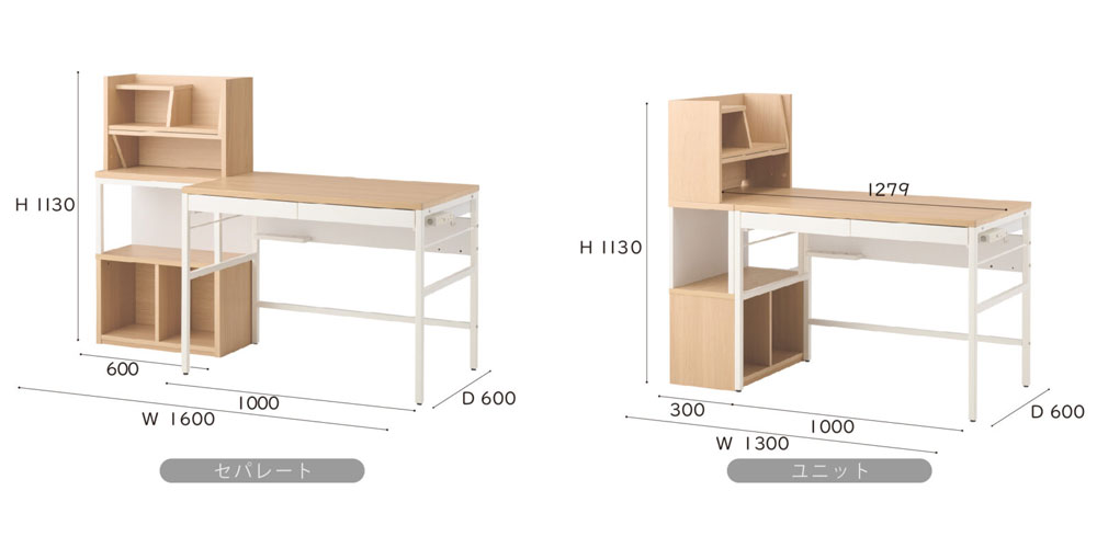 学習デスク「リシェット MDF」デスク+マルチラック 幅100cm 全2色
