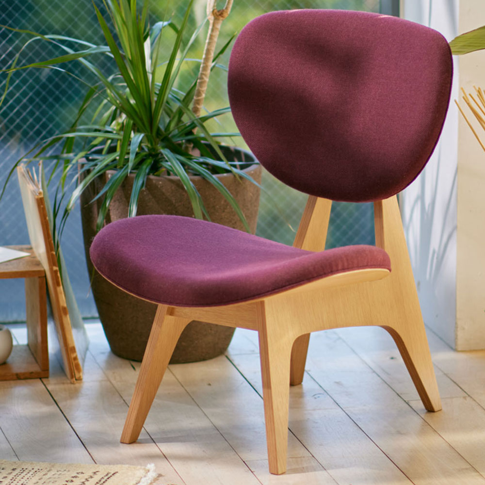 直線的な脚部と、有機的な曲線を描く背と座の意匠上のコントラストが魅力です。低座イス(S-5016NA-ST)に比べ高い座面は、傾斜が浅く設けられ、立ち上がりしやすく設計されています。