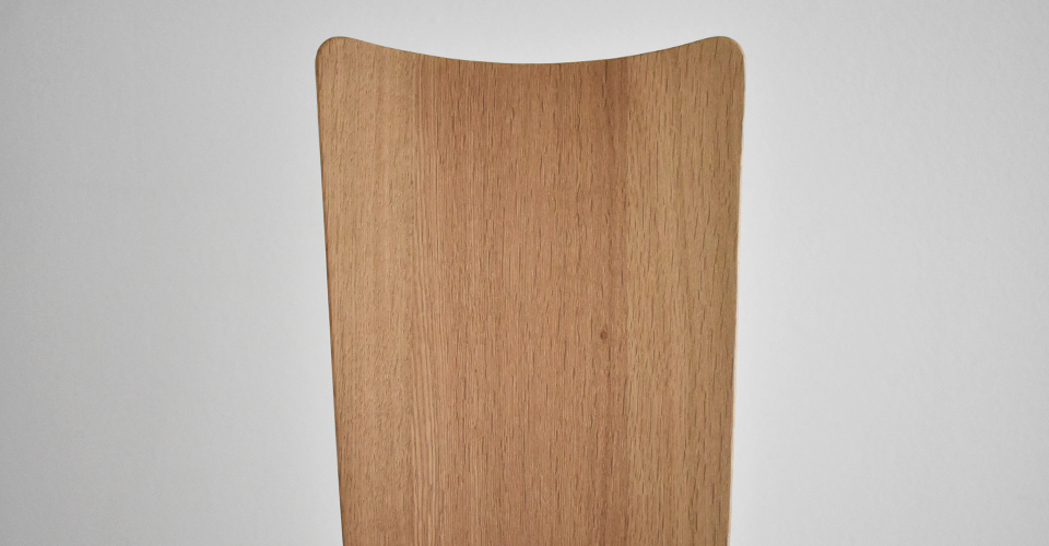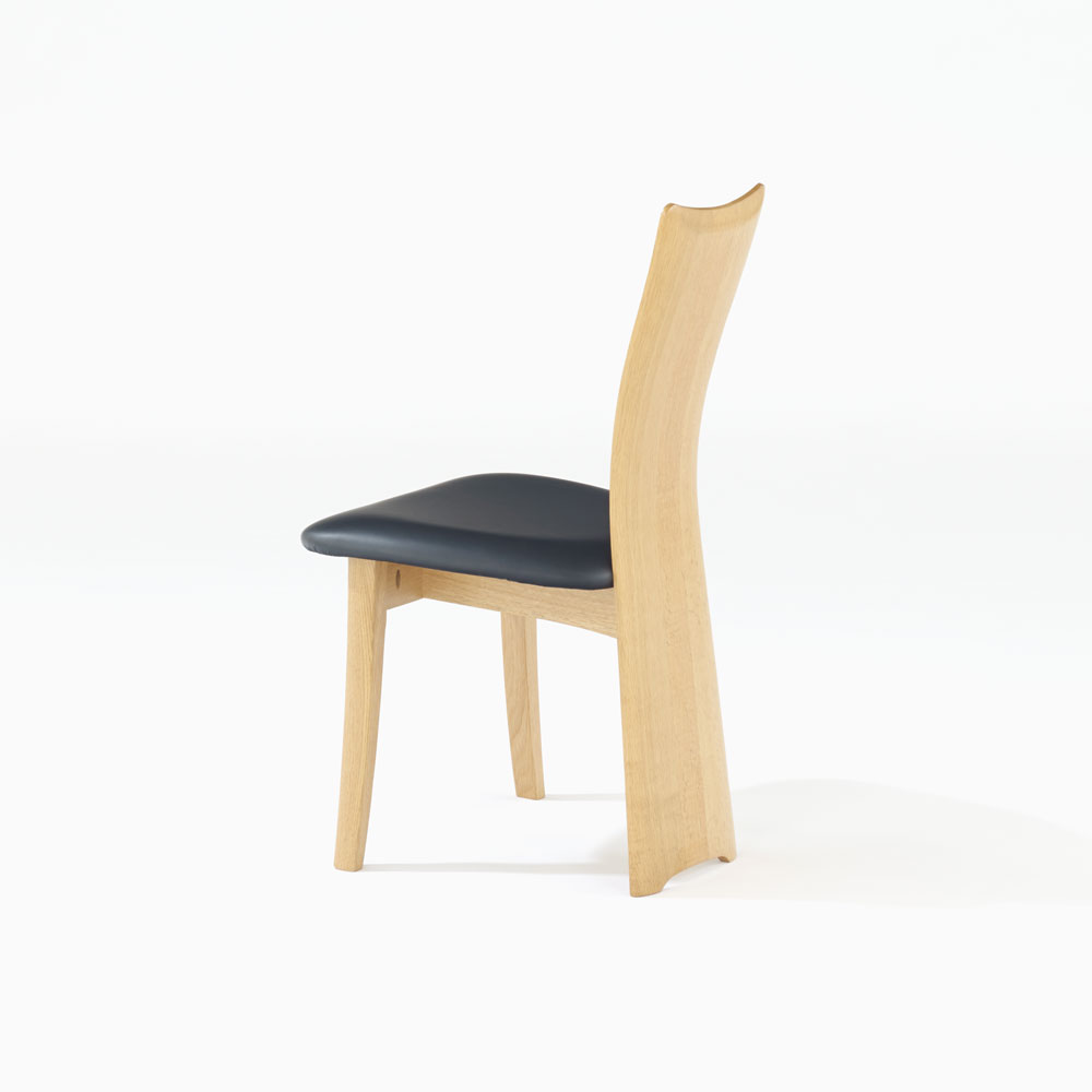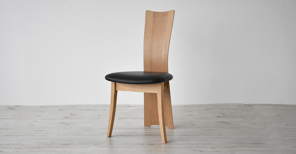 レッドオーク材の素材感を活かした、美しい背もたれが目を引くデザインです。ゆるやかな曲線が背全体を支えてくれて、座り心地も快適です。