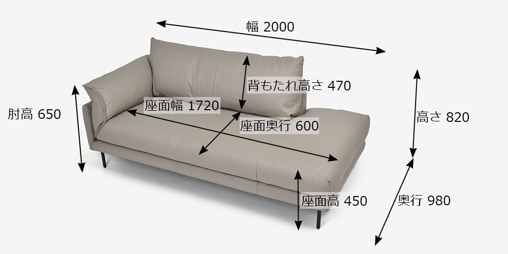 CORIUM(コリウム)片肘ソファ 向って左肘「ジェローム model.CO-0566」幅200cm 革 全2色