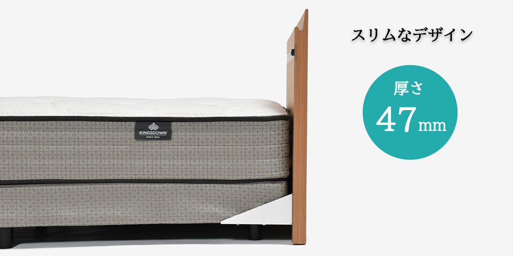 ヘッドボードの厚みは47mmとスリムなデザインですので、お部屋のスペースをとりません。※マットレスは別売りです。