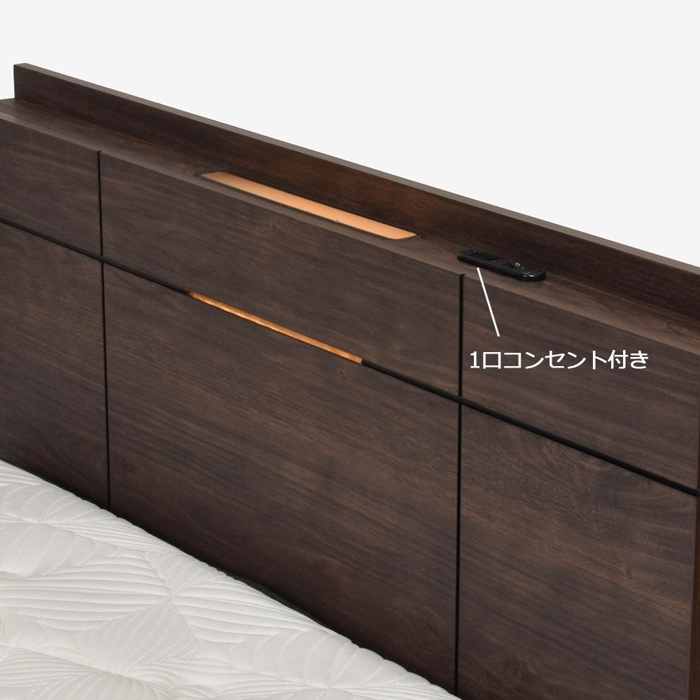上部には枕元をやさしく照らす間接照明(LED照明)と1口コンセントも付いており機能性も充実しています。