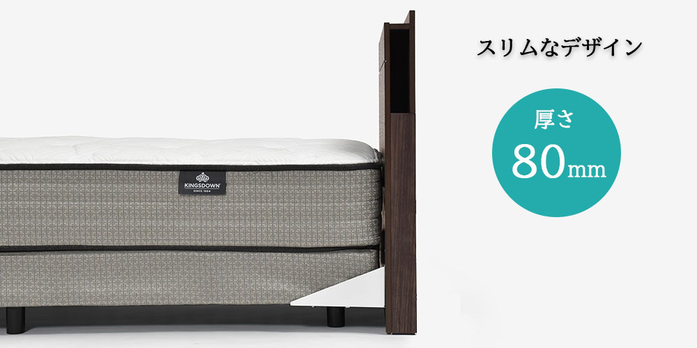 宮付きのヘッドボードですが厚みは80mmとスリムなデザインですので、お部屋をスッキリと見せます。※マットレスは別売りです。