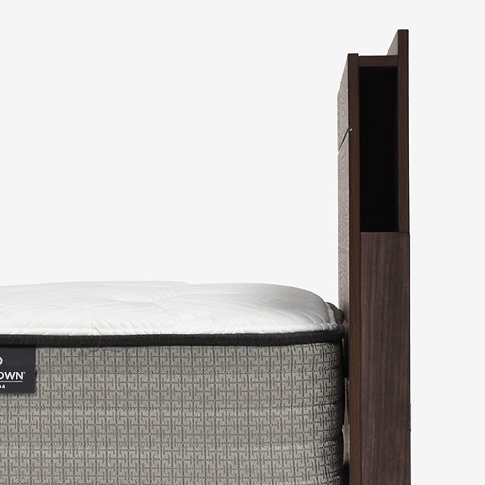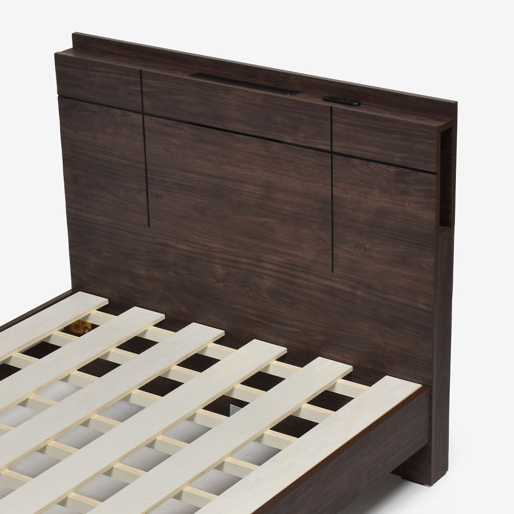 宮付きのヘッドボードですが厚みは80mmとスリムなデザインですので、お部屋をスッキリと見せます。※マットレスは別売りです。