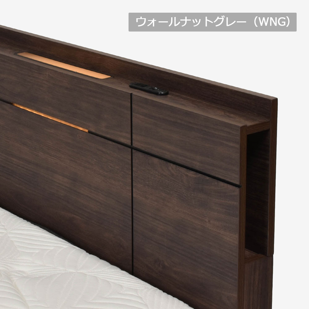 上部には枕元をやさしく照らす間接照明(LED照明)と1口コンセントも付いており機能性も充実しています。
