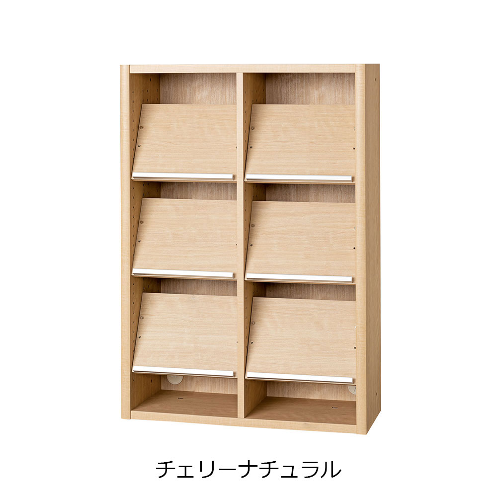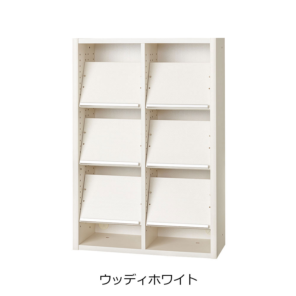 ディスプレイ棚板の枚数が多いタイプです。ディスプレイ棚板を垂直に取り付けると、後ろにA4収納が可能です。棚板を水平にして細かく設置すれば、薄い紙や雑誌をきれいに収納できます。