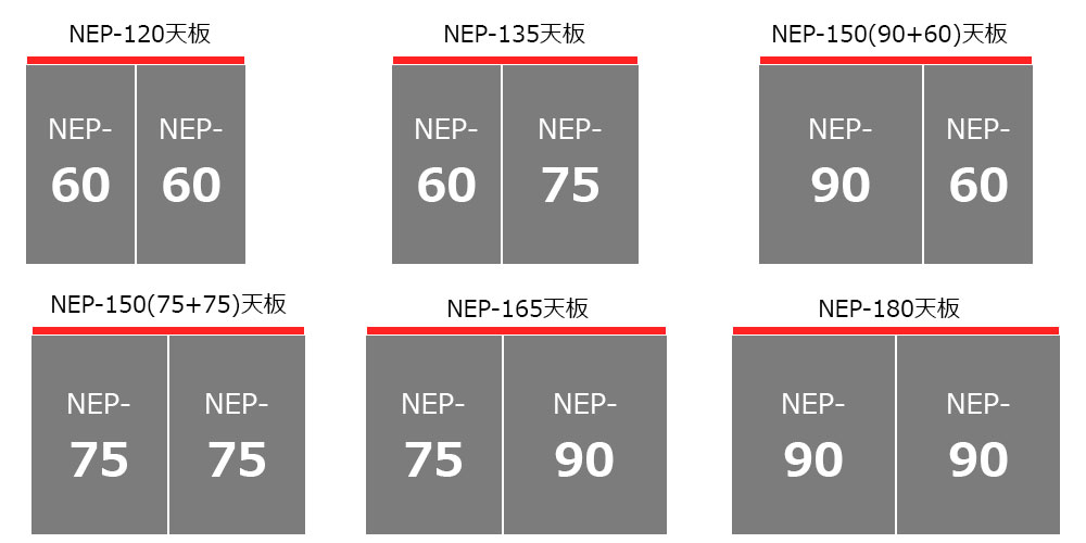 ※NEP-150 天板は(90+60)用と(75+75)用の2種類ありますのでご注意ください。