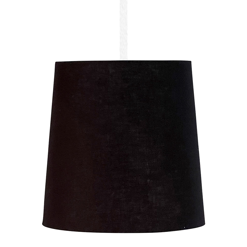 天然素材コットンとリネンの混合スラブ生地をセードに使用したペンダントライト。薄手の黒色生地を採用することによって、点灯時には中心部とセードの端に光の濃淡ができ、魅惑的な光がセードを通して放たれます。