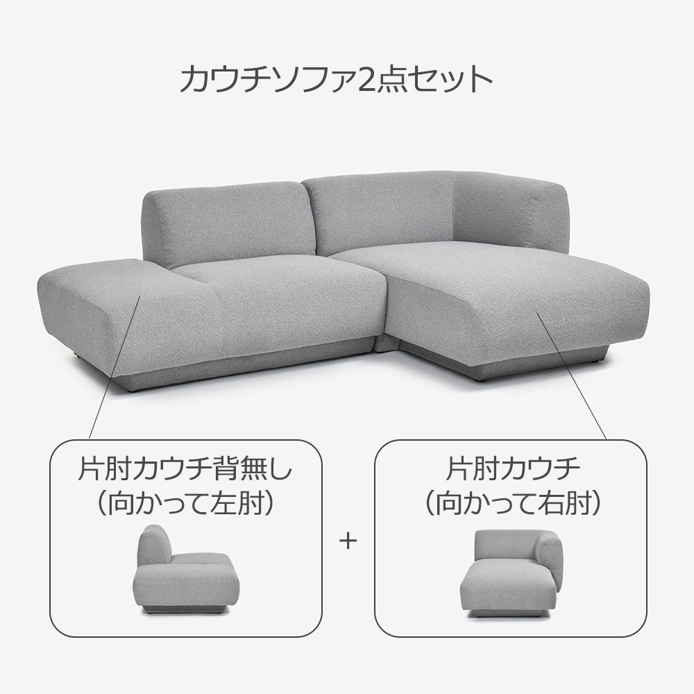 FaBBRica(ファブリカ)カウチソファ2点セット「FA-0669」片肘カウチ背無し(向かって左肘)+片肘カウチ(向かって右肘)布#FA-2 FAB-VIS-451 アッシュ色
