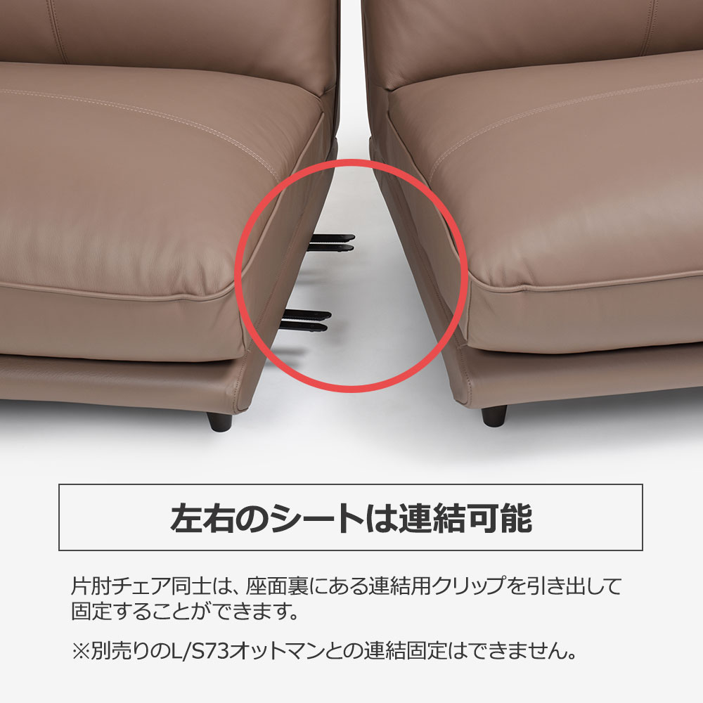 ソファ 2点セット「L/S 73(エルエス73)」片肘チェア(向って左肘+向って右肘)幅212cm 革#H/S-586E フォーン色