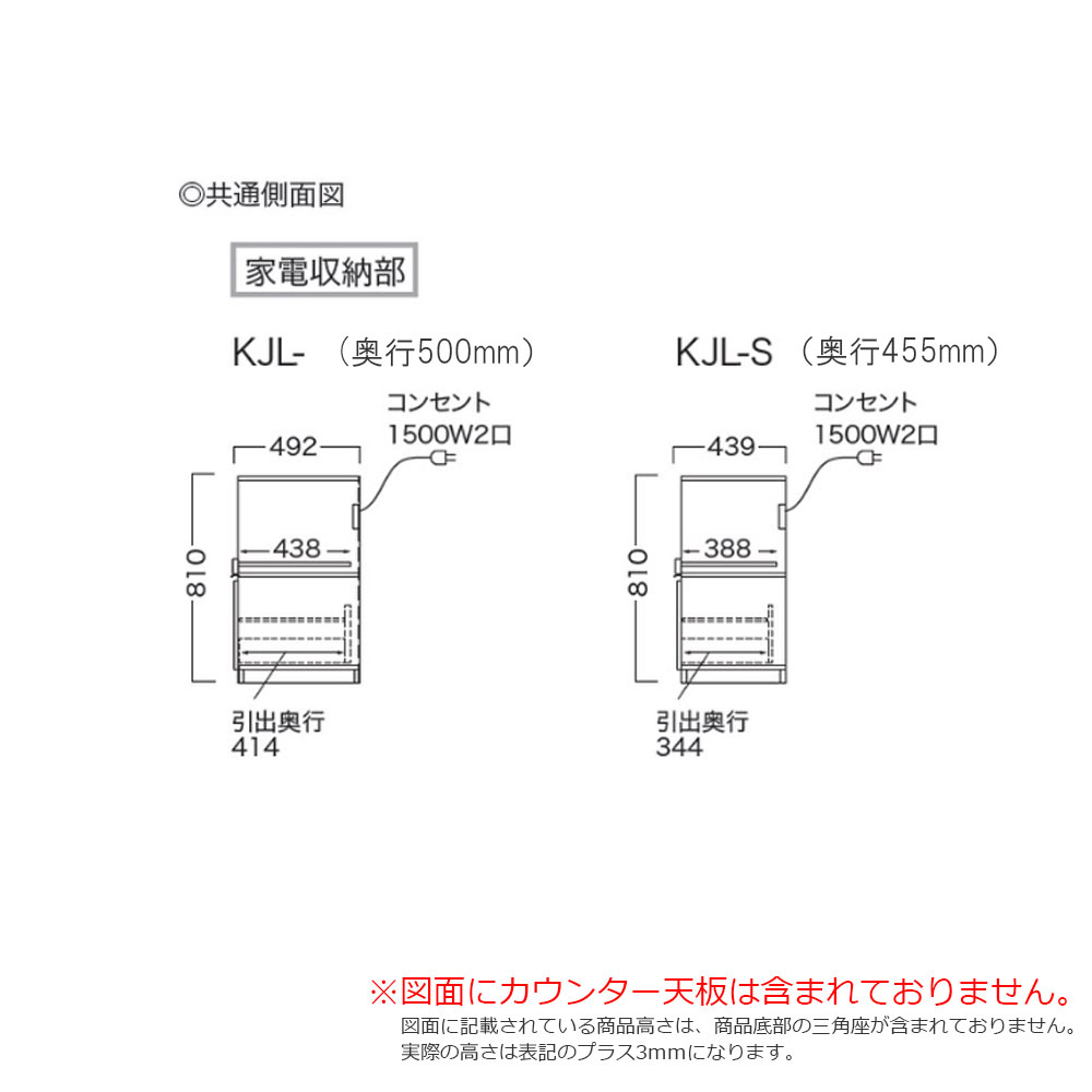 優れた機能と豊富なバリエーションでスタイルに合わせた理想の食器棚が見つかる「KJ」シリーズ。家電収納スペースと引出しが一体型の下台にカウンター天板を組み合わせています。カウンター天板は上台との連結穴がなく、フラットな天板です。作業台としても使いやすい低めのレギュラーカウンターです。※画像はイメージです。