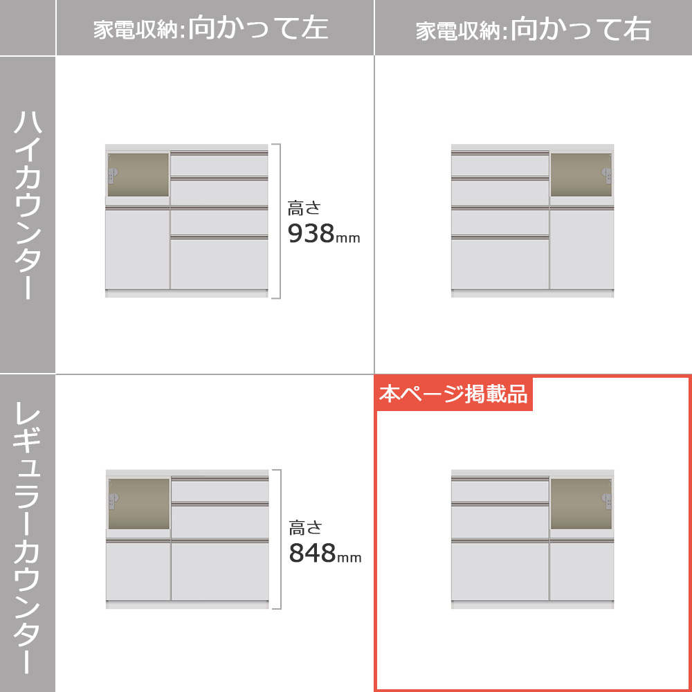 Pamouna(パモウナ)キッチンカウンター「KJ」レギュラーカウンター 家電収納向かって右 パールホワイト 幅2サイズ(100cm・120cm)奥行2サイズ(50cm・44.5cm)下台:家電収納一体型