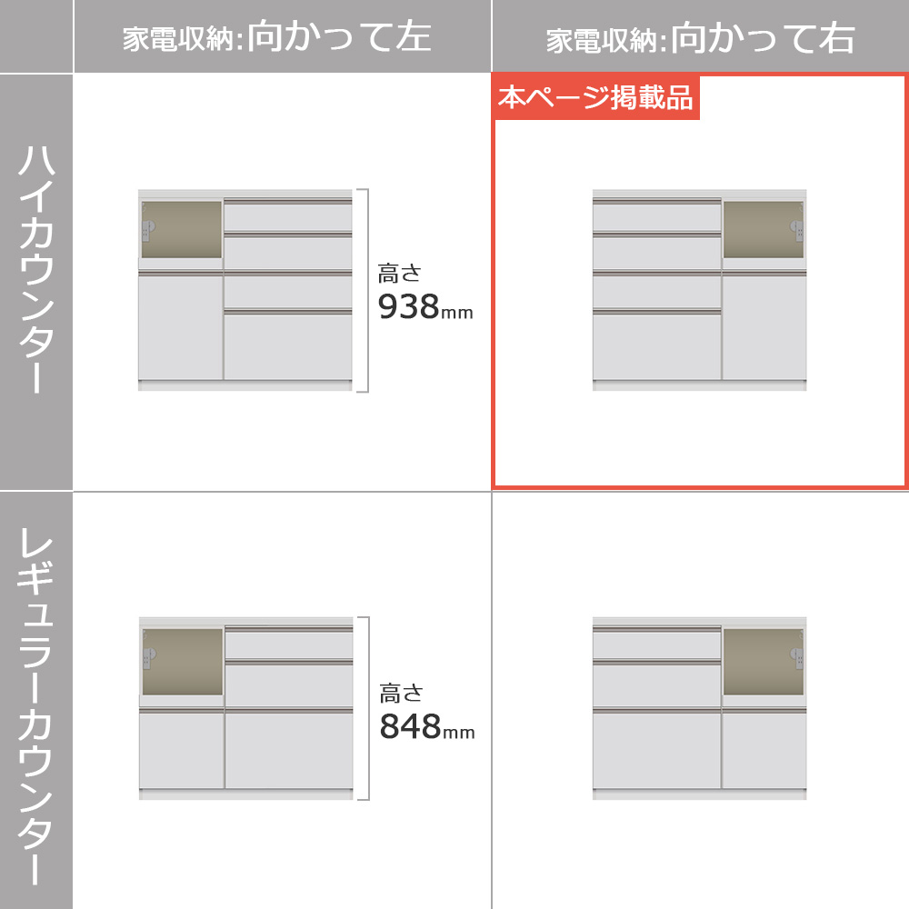 Pamouna(パモウナ)キッチンカウンター「KJ」ハイカウンター 家電収納向かって右 パールホワイト 幅2サイズ(100cm・120cm)奥行2サイズ(50cm・44.5cm)下台:家電収納一体型