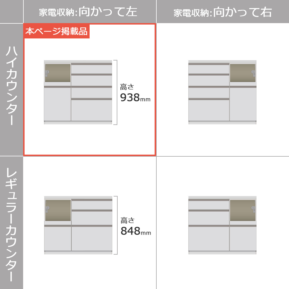 Pamouna(パモウナ)キッチンカウンター「KJ」ハイカウンター 家電収納向かって左 パールホワイト 幅2サイズ(100cm・120cm)奥行2サイズ(50cm・44.5cm)下台:家電収納一体型