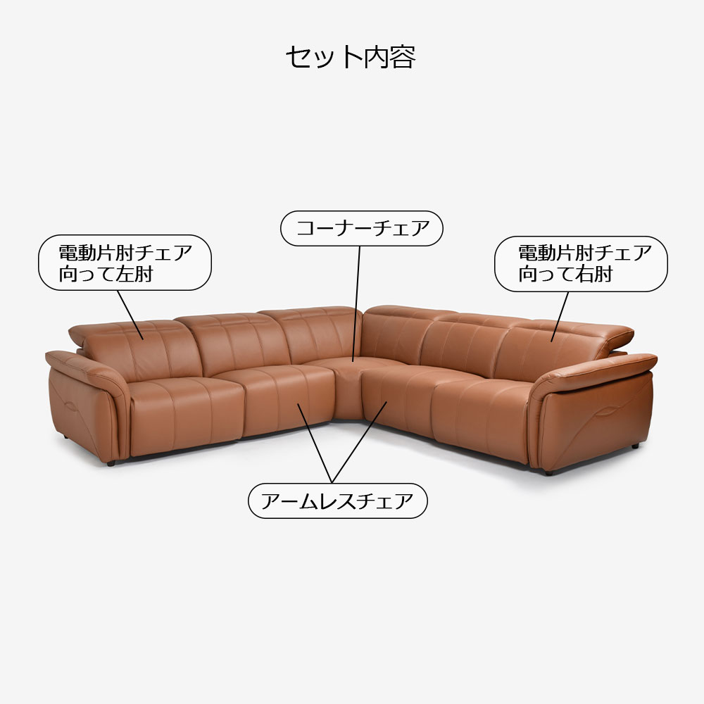 電動リクライニングコーナーソファ5点セット「L/S Motion 74(エルエスモーション74)」幅297cm 革#H/S-334E ペカンブラウン色