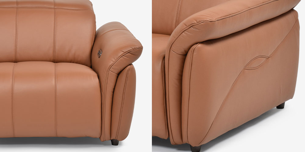 ボタン操作でシートのヘッドレスト、フットレストがお好みの角度に調整できます。スイッチは両肘の内側にあるので座りながらの操作が簡単にでき、USBポートがあるのでソファでくつろぎながらスマートフォンやタブレットの充電も可能です。