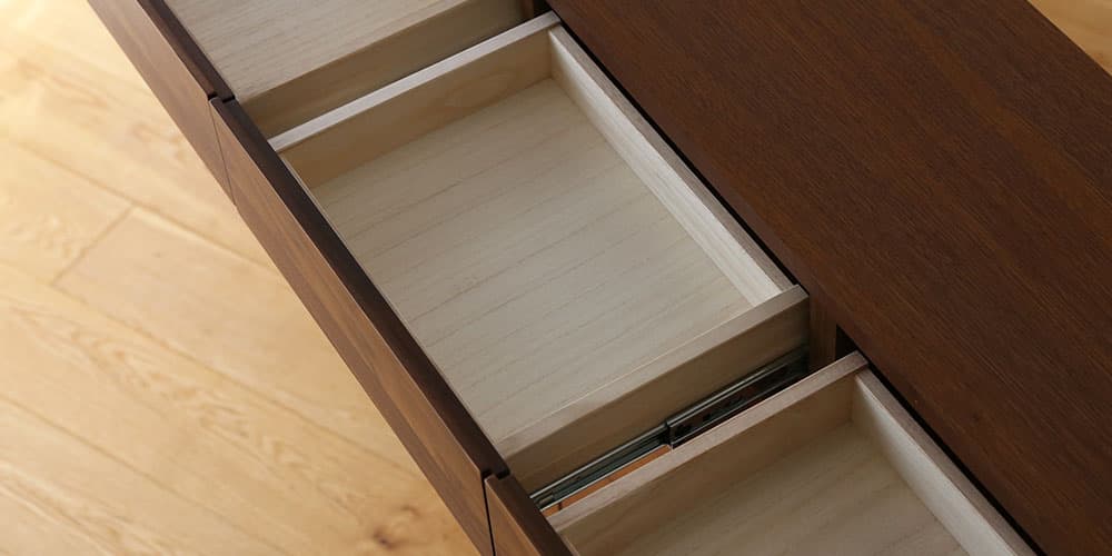 引出しはフルオープンスライドレールを使用しており、スムーズに開閉することが出来ます。