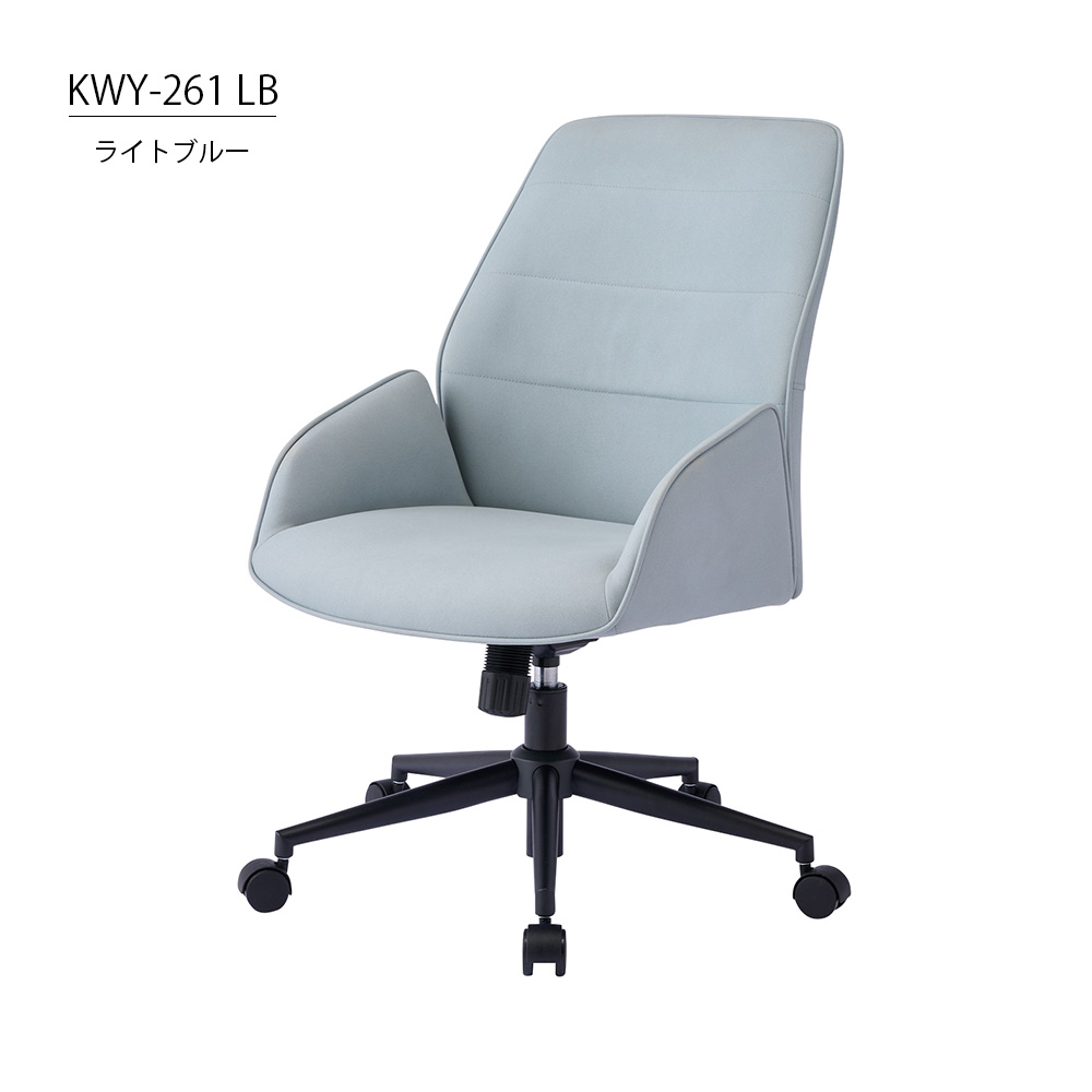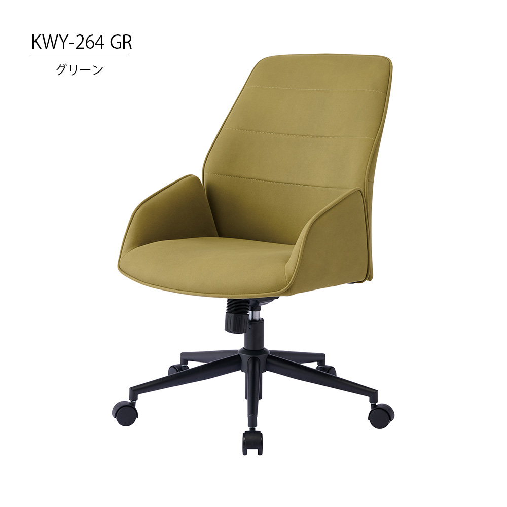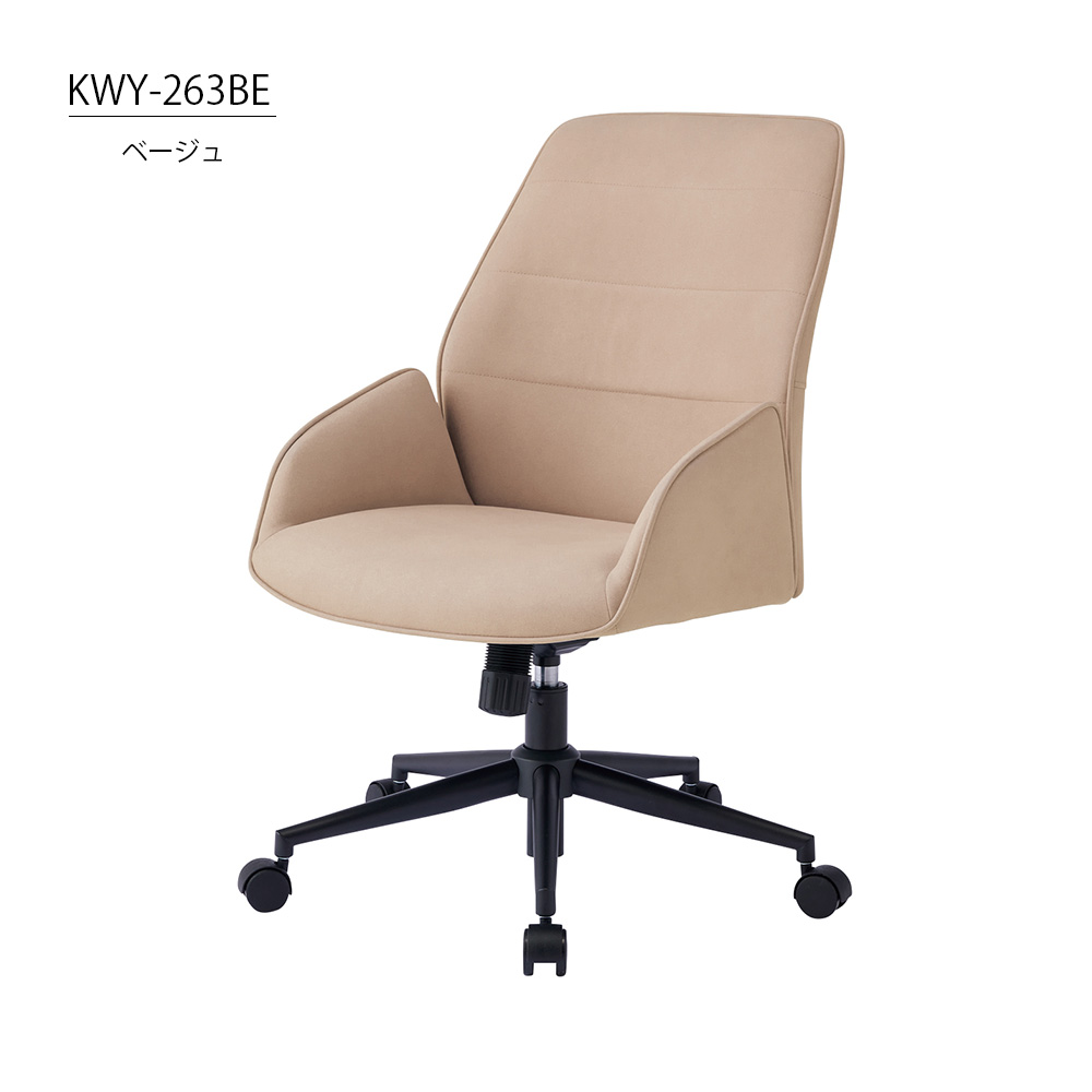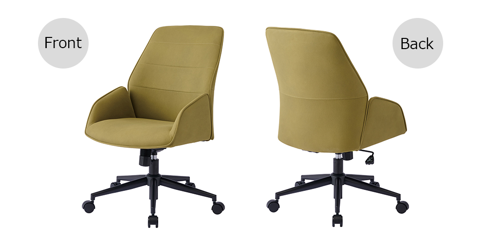背もたれと肘置き(アームレスト)が身体を包み込むような形状のため、座っていてとても安心感があります。背中をしっかり支えるミドルバックタイプです。※画像はイメージです。