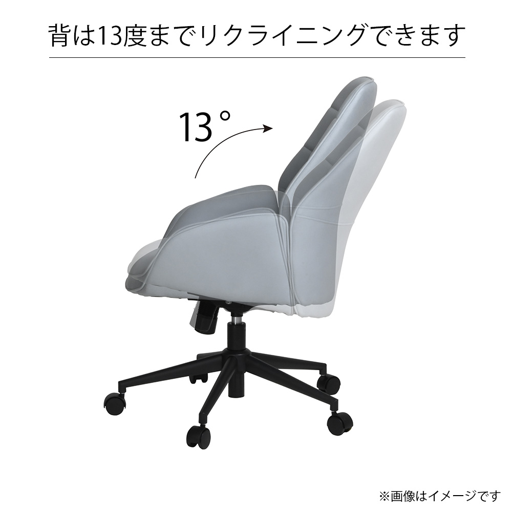 背座ともに身体の動きに合わせて最大で13度まで傾くロッキング仕様です。座面下のレバーで背もたれが倒れないように直立時のロックが可能です。座面裏のノブでロッキング硬さ調節が行えます。※画像はイメージです。
