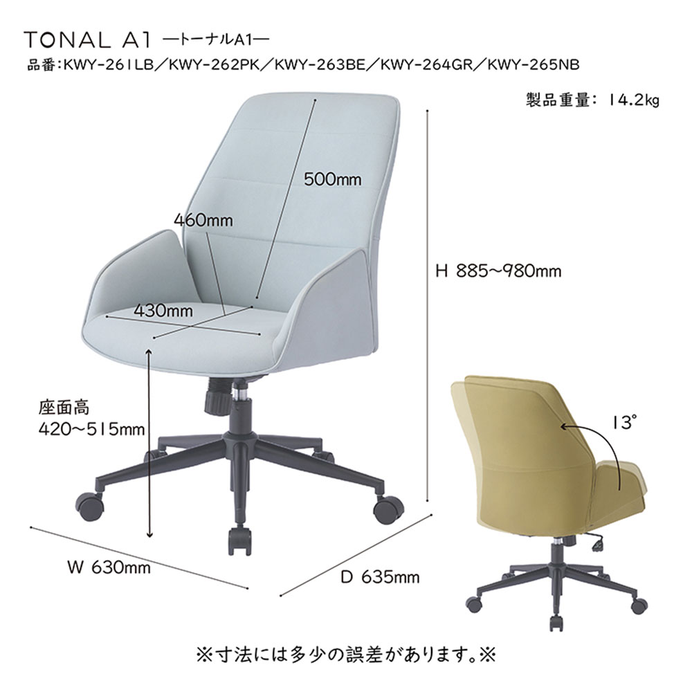 デスクチェア「トーナルA1」肘付きタイプ 全5色
