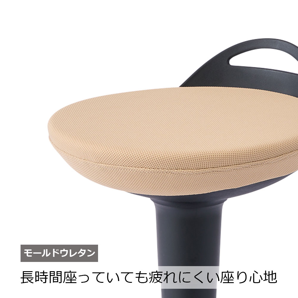足元から360度スイングする機能を搭載。支柱が斜めに傾くことで中腰姿勢にも対応して身体を支えることができ、デスクワークや立ち作業など、さまざまなシーンで快適にご使用いただけます。