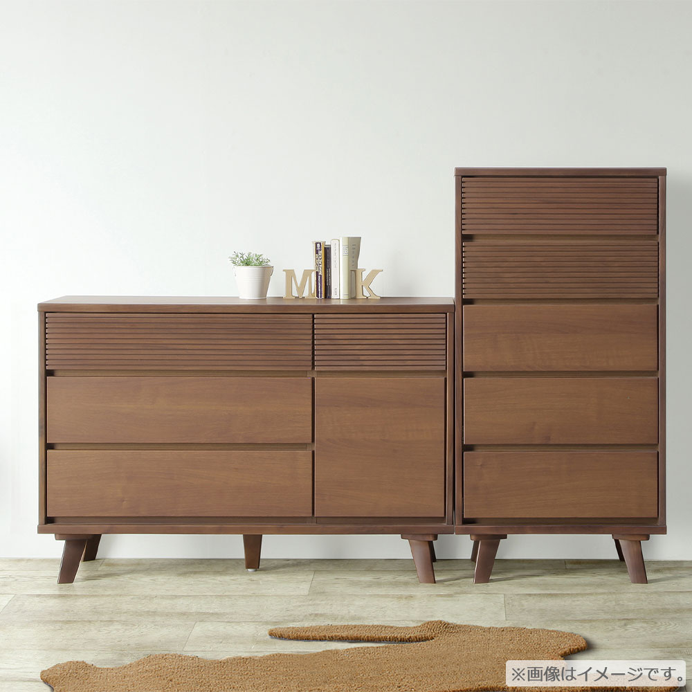 クラークは収納力とあたたかみのあるデザインを兼ね備えたシリーズです。前板に施されたルーバーがアクセントになっています。※画像はローチェスト120とハイチェスト60のレイアウトイメージです。