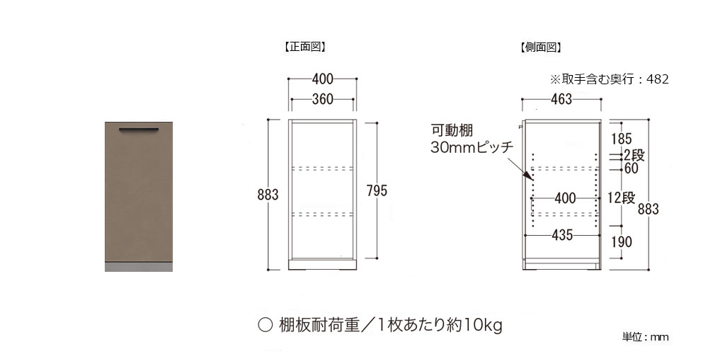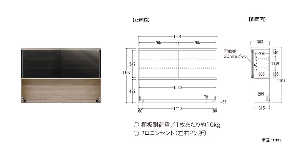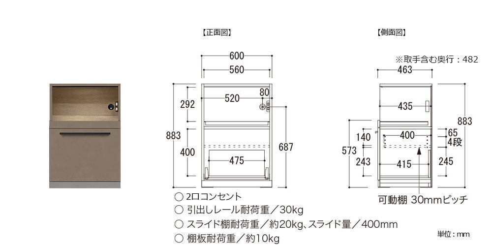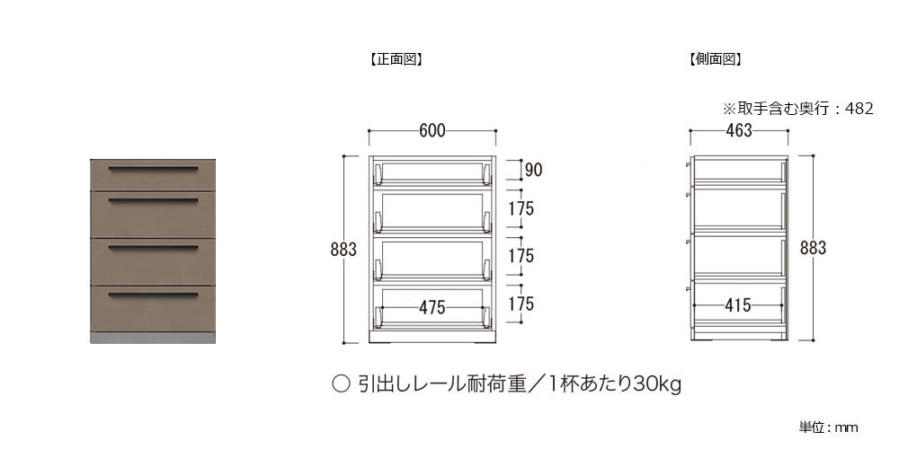 引出しレール:1杯あたり約30kg